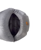 La capucha totalmente envolvente con corte que reduce puntos fríos y el cuello térmico tridimensional anatómico — ajustable mediante un cordón semi-elástico integrado— crean un capullo protector alrededor de la cabeza y los hombros. Una construcción de pared lateral estabiliza el plumón, mientras que la cremallera lateral de longitud total con doble cursor autobloqueante, solapa térmica y tubo interior relleno de plumón proporciona protección térmica hermética.